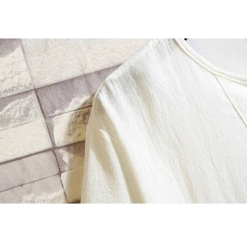 Set da meditazione in lino e cotone da uomo, 2 pezzi, maglietta a maniche corte con coulisse e pantaloni corti con tasche, Buddha Stones - FlorealeBianco - US/UK/AU46, EU56 (5XL) - image 2