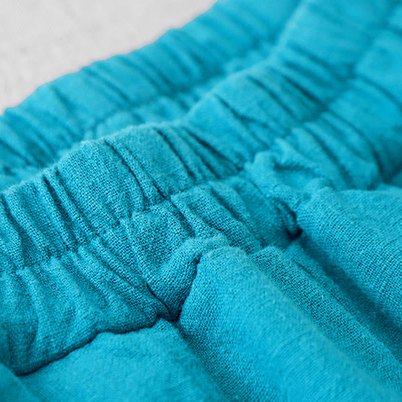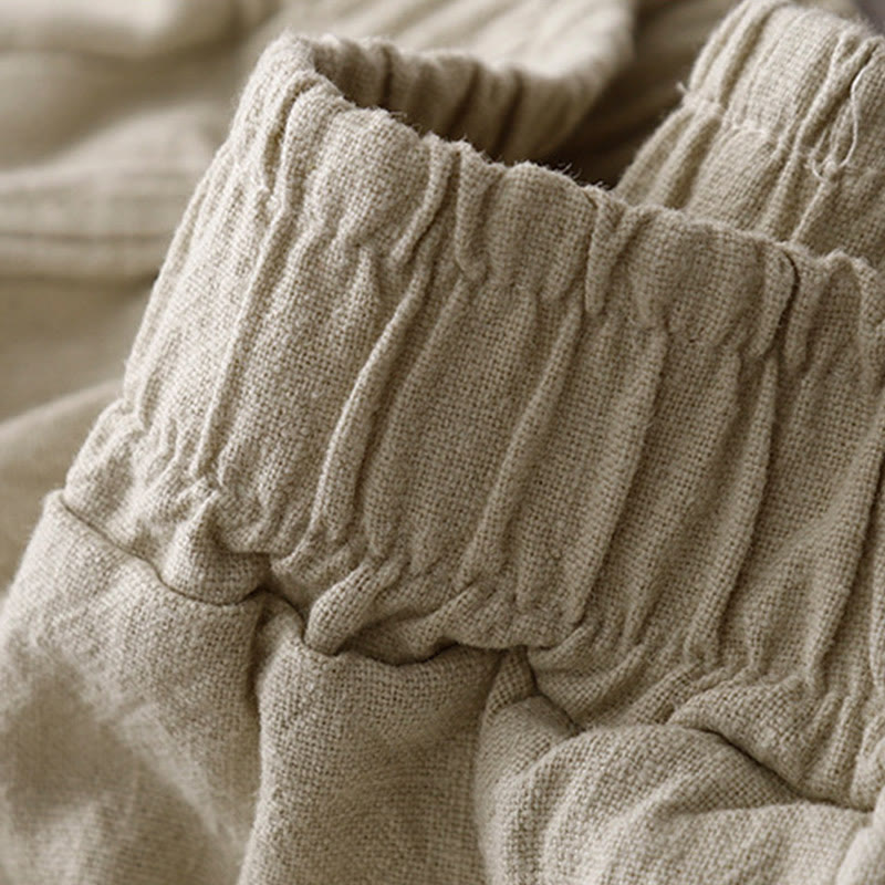 Pantaloni harem in lino e cotone casual tinta unita Buddha Stones da donna, lunghezza 7-8, con tasche