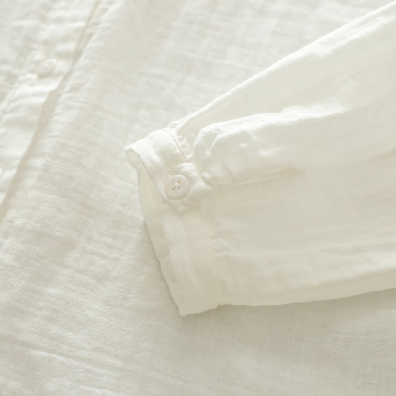 Camicia da donna in cotone a maniche lunghe con bottoni ricamati floreali colorati bianchi Buddha Stones Fall