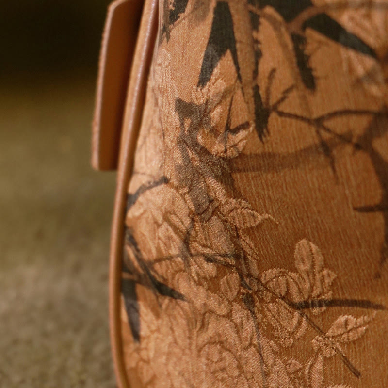 - Materiale: seta di gelso, seta Xiangyunsha, pelle di mucca, metallo, manico in bambù