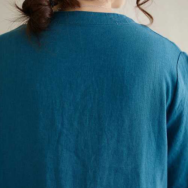 Abito midi in lino con maniche corte, colletto rialzato, bottoni e Buddha Stones - DodgerBlue - US8-10, UK/AU12-14, EU40-42 (2XL) - image 15