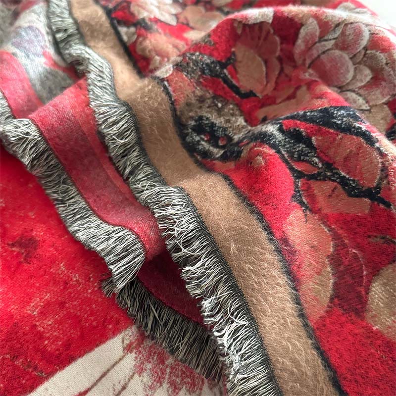 Sciarpa morbida e accogliente con motivo a nappe, motivo a gru autunnale Buddha Stones , motivo a loto e fiore di prugna - Rosso - 180*65cm - image 0