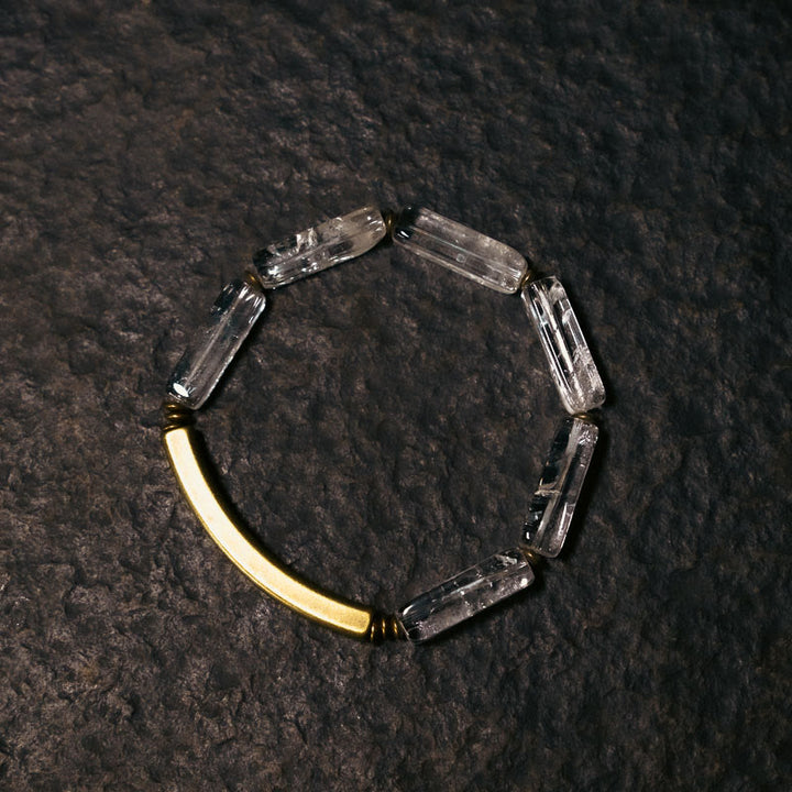 Braccialetto della fortuna in rame con cristallo bianco quadrato Buddha Stones