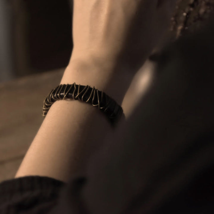 Semplice e maturo : il nero rappresenta semplicità, classicismo e maturità. Indossare un braccialetto in pelle nera può mostrare gusto e stile personali, rendendo chi lo indossa più maturo e sicuro di sé.