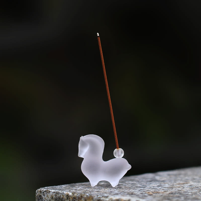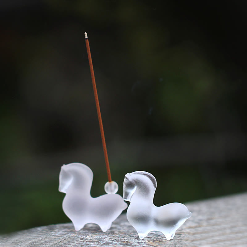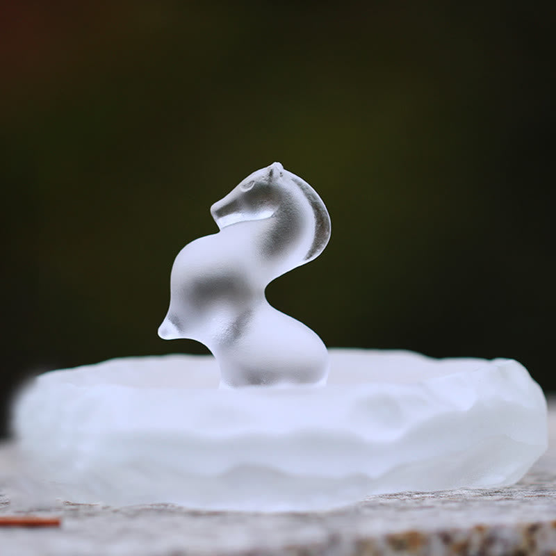 Buddha Stones Anno del Cavallo Baccello di Loto Foglia di Loto Liuli Opera d'Arte di Cristallo Decorazione Energetica per la Casa e l'Ufficio - Cavallo con foro per incenso e cuscinetto con bordo ondulato - image 9