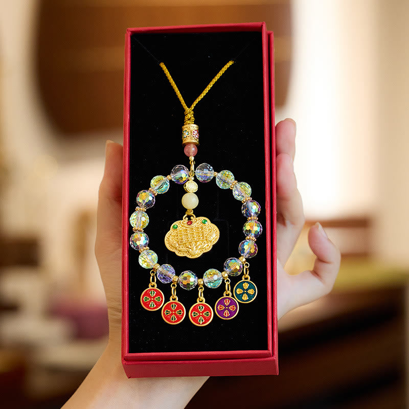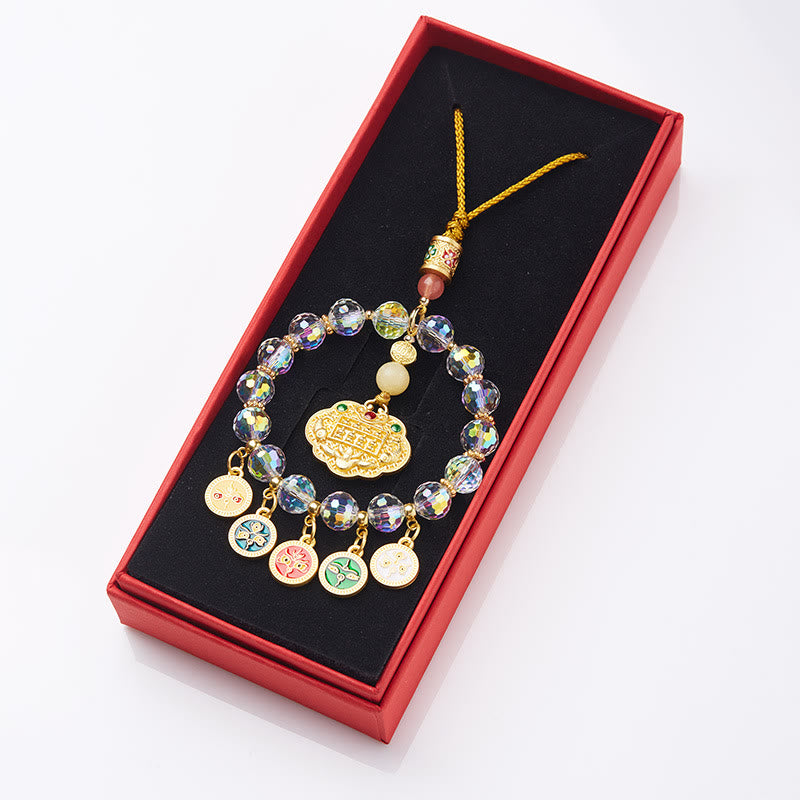 Il ciondolo sul braccialetto raffigura i cinque dei della ricchezza, che sono i seguenti: