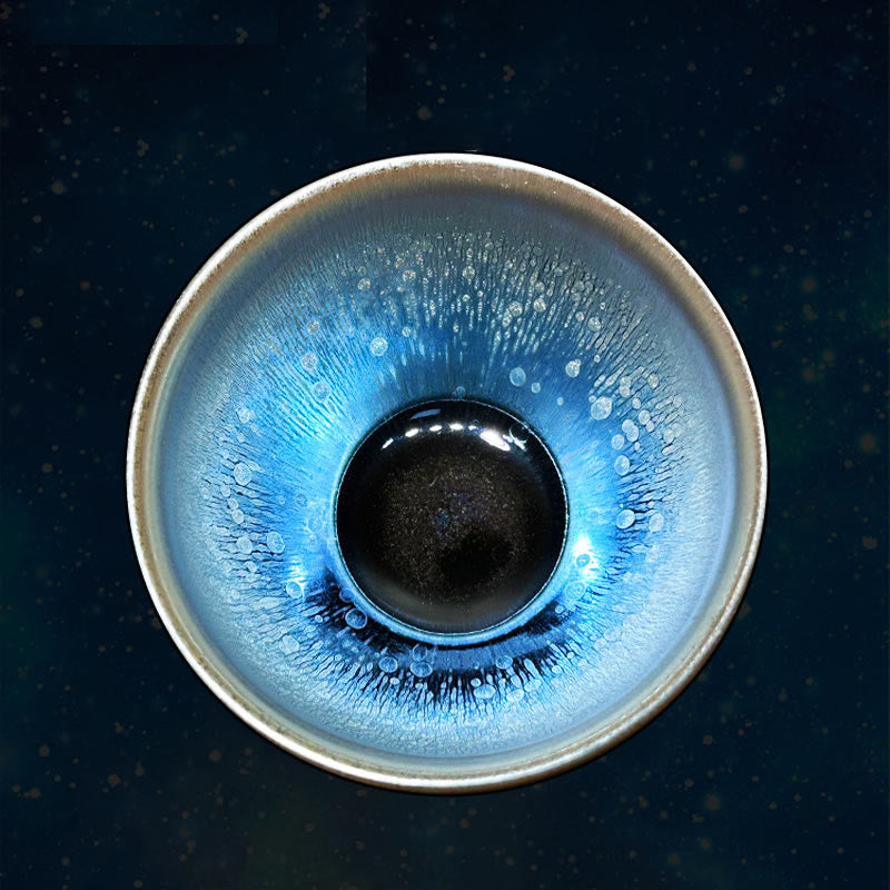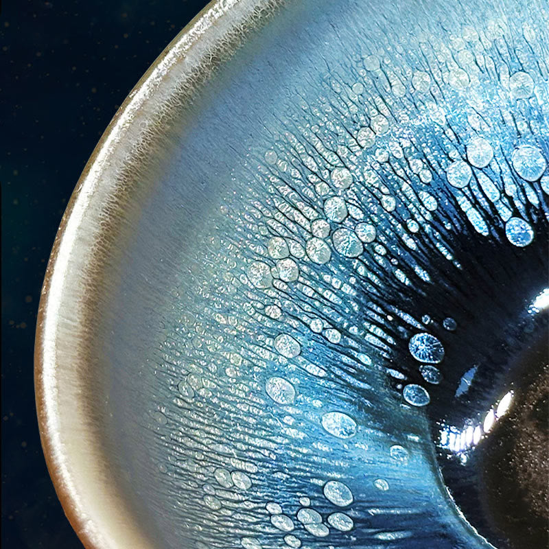 Queste tazze sono apprezzate per la loro smaltatura scura e densa, con "effetti speciali" colorati. Questi particolari decori vengono ottenuti tramite cottura ad alta temperatura, che permette alla smaltatura di cristallizzarsi creando splendidi motivi. I motivi che possono presentarsi possono essere, ad esempio, strisce, piume o macchie d'olio.