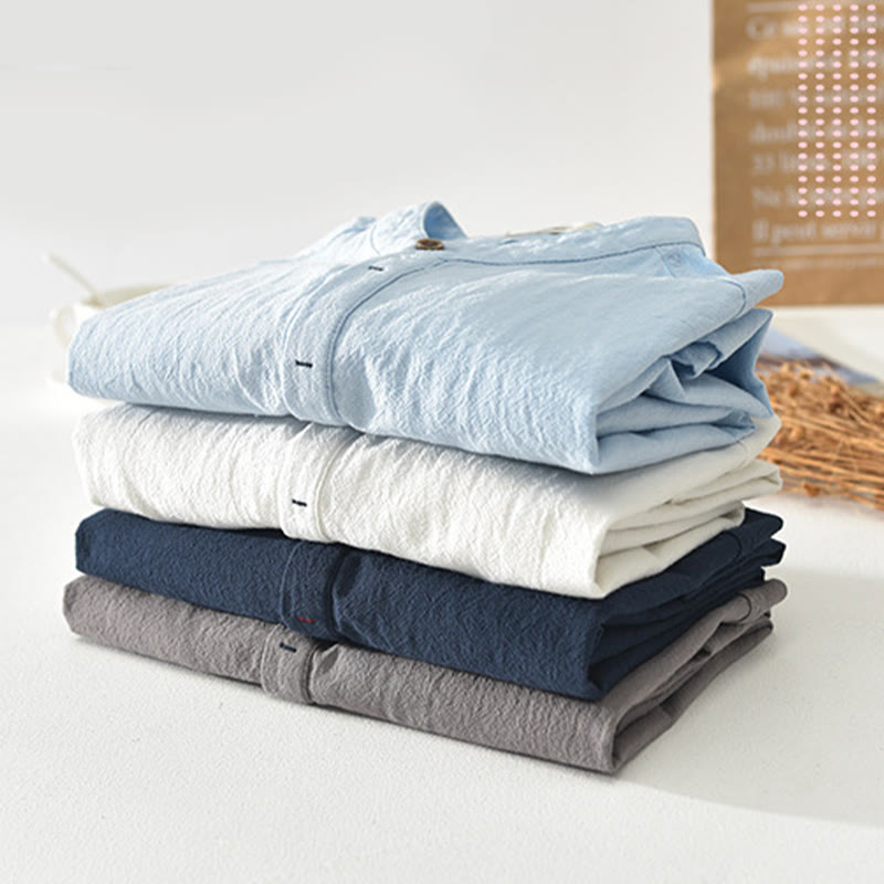 Camicia a maniche corte con mezza abbottonatura in tinta unita, incarna semplicità e comfort grazie alla sua morbida miscela di cotone e poliestere . Il design con mezza abbottonatura offre un tocco di fascino classico, mentre le maniche corte garantiscono traspirabilità. Questa camicia simboleggia una fusione di tradizione e relax , ideale per momenti di consapevolezza e pace. 💕