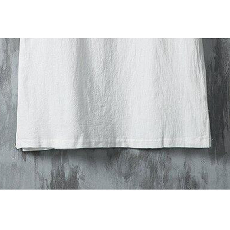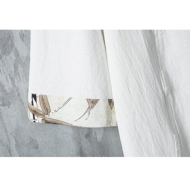 Buddha Stones in cotone e lino con maniche corte, motivo patchwork, motivo Buddha Stones, estate, bottoni e stampa cinese a rana - Bianco - US/UK/AU46, EU56 (5XL) - image 1