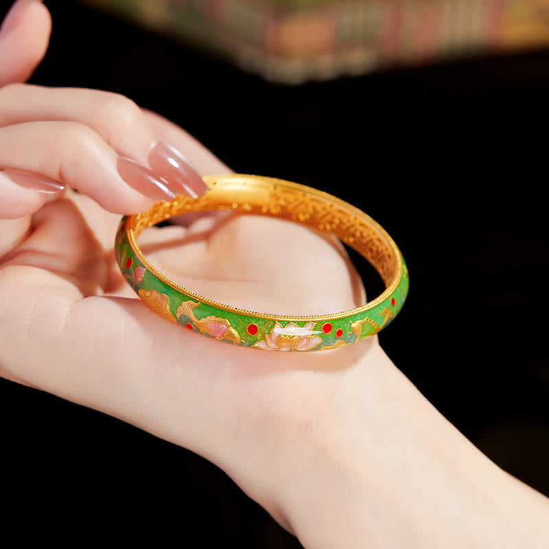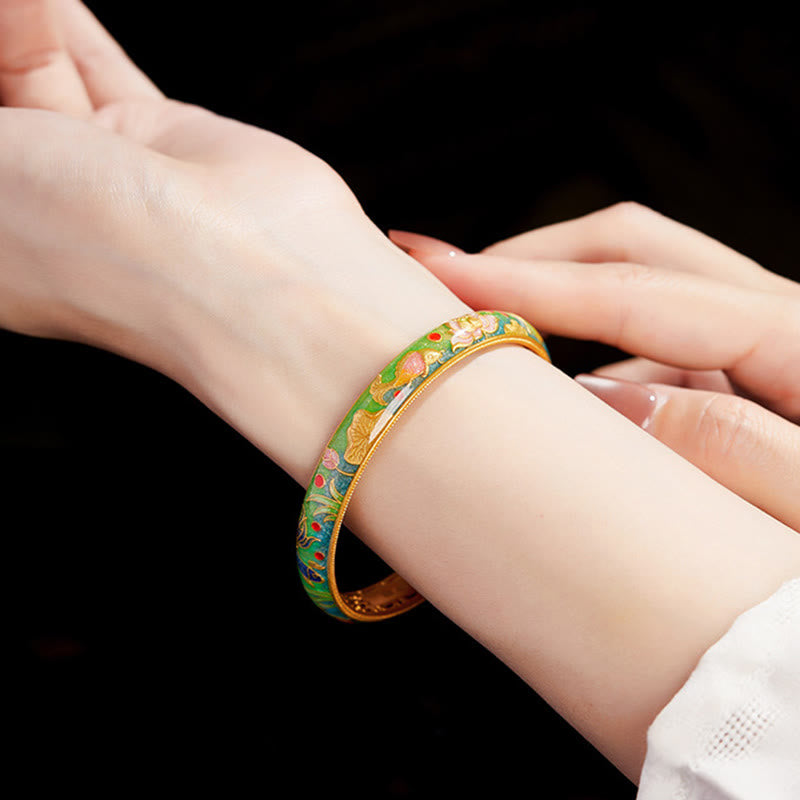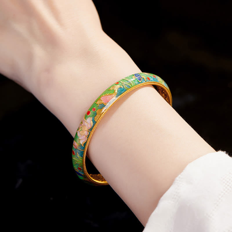 Bracciale rigido Buddha Stones in argento sterling 999 con pesce koi, loto e ricchezza, BS 1
