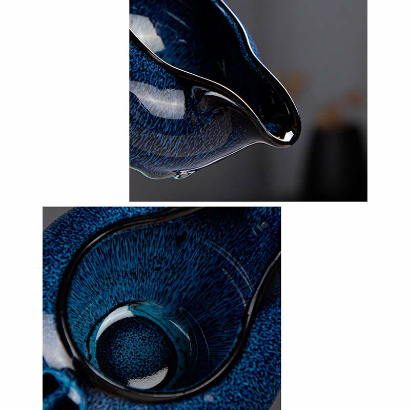 Set di teiere in ceramica cinese Gongfu con sfumatura blu, confezione regalo portatile