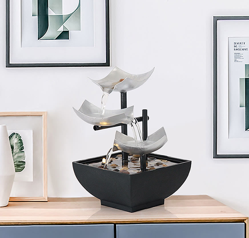 - Fontana decorativa da tavolo Feng Shui : porta un'atmosfera calmante, zen e decorativa in qualsiasi stanza; 3 livelli creano un delicato flusso d'acqua rilassante che riproduce le immagini e i suoni di una tranquilla sorgente,